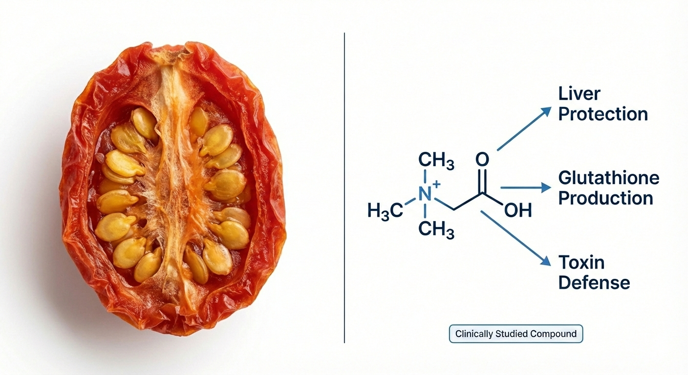 "Naturally occurring betaine develops through our traditional sun-drying process and is clinically associated with liver detoxification, glutathione production, and protection against modern environmental toxins like microplastics and PFAS chemicals."
