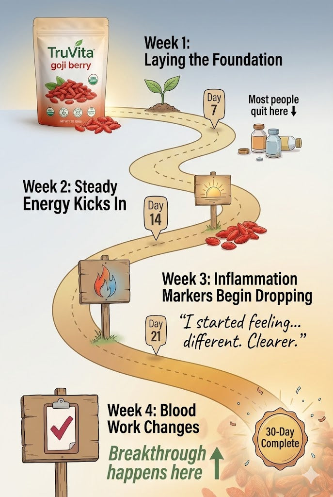 Diabetic for 12 years. I've thrown away so much money on cinnamon, berberine, and every "blood sugar support" supplement that promised results but never delivered. My morning readings were stuck in the 140s-150s even with medication. My neighbor kept telling me about TruVita's 30-day approach and how goji berries support liver detox, which apparently affects blood sugar. After two weeks, nothing. Week three, I noticed my afternoon crashes stopped. By week four, my fasting glucose dropped to the 120s consistently. I'm now on month three and my A1C went from 7.2 to 6.8. My doctor reduced one of my medications under supervision. No stomach issues, no weird side effects. Just steady improvement.