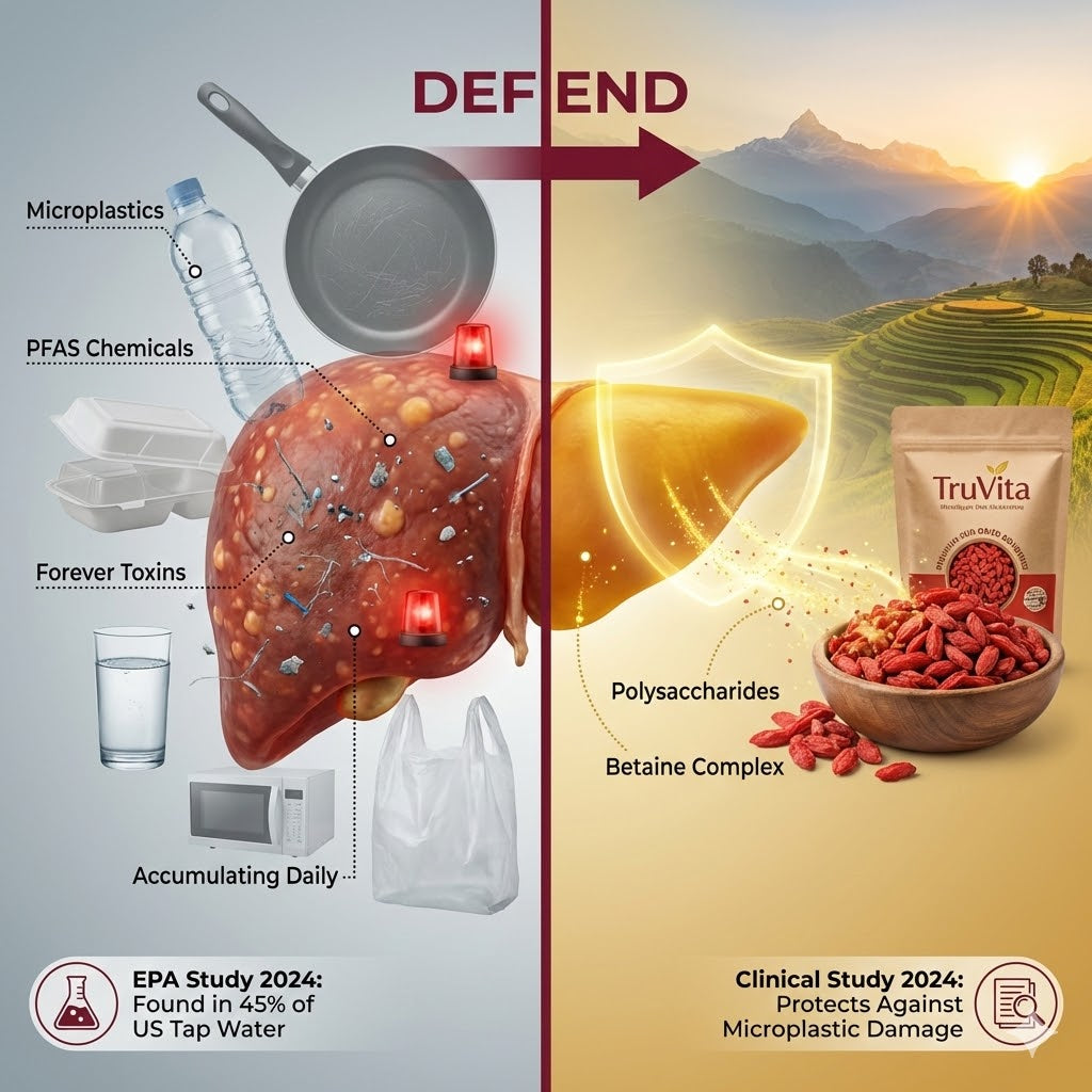 NEW 2024 research revealed microplastics from packaging and PFAS "forever chemicals" from tap water are silently accumulating in your liver right now. While you can't avoid them, you can defend against them. Our sun-dried Tibetan Plateau goji berries contain the exact polysaccharides and betaine compounds clinically proven to protect liver cells from microplastic-induced damage and PFAS toxicity.
